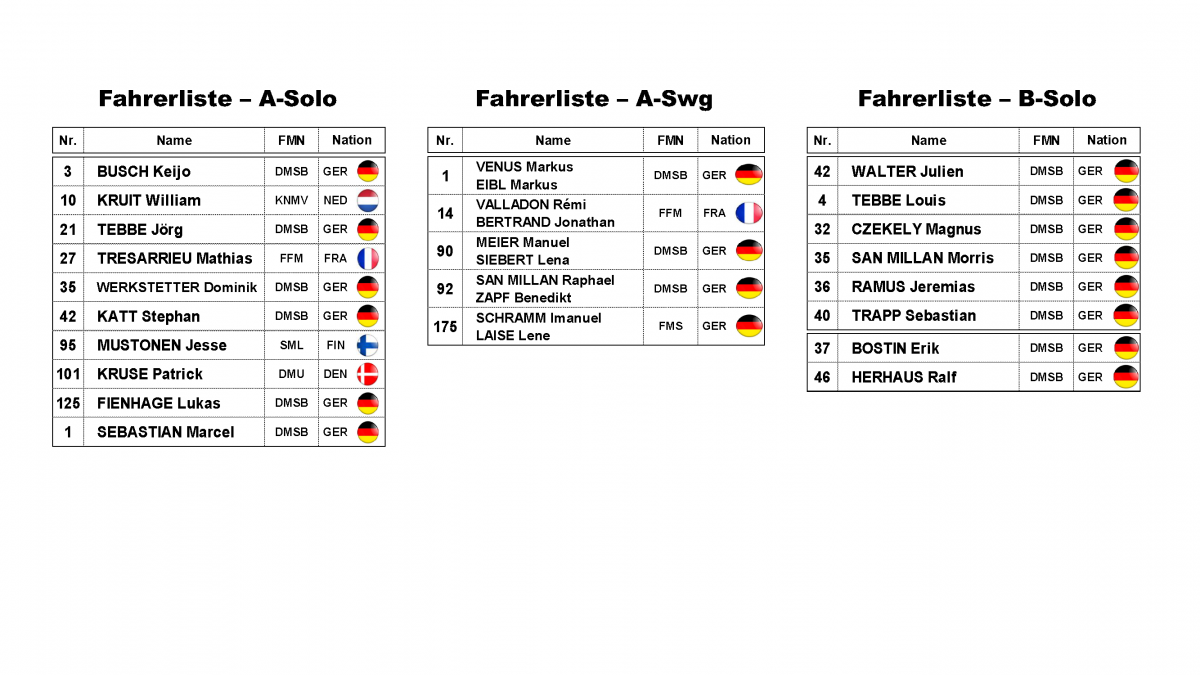Fahreraufstellung komplett